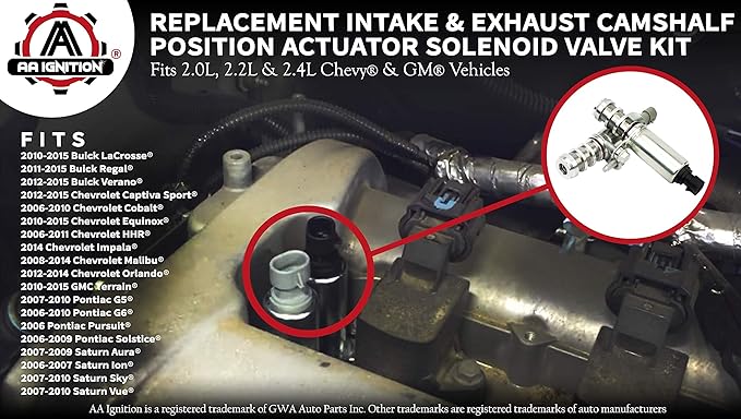 Amazon Com Intake And Exhaust Camshaft Position Actuator Solenoid Valve Kit Replaces 12655421 12655420 Compatible With Chevy Gmc Cobalt Hhr Malibu Equinox G6 And Other Gm Vehicles 2 0 2 2 2 4l Automotive